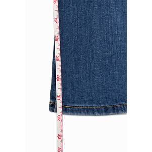 Classic medium wash stretch denim with a slim fit through the hips and thighs and an easy flare at the hem.