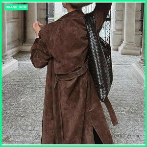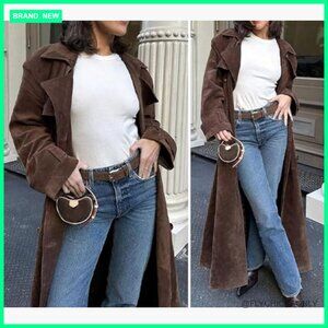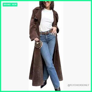 ✨ Faux Suede Long Trench Coat