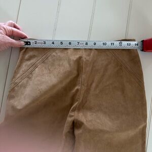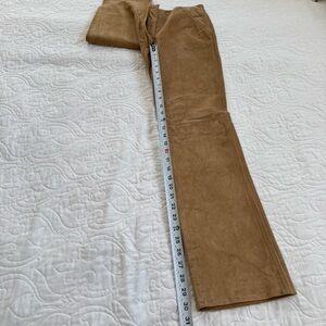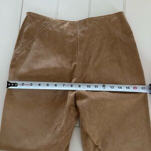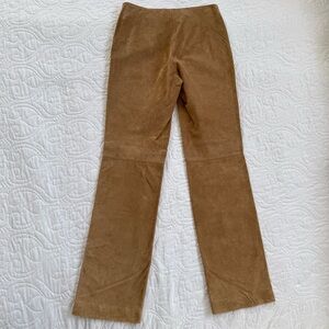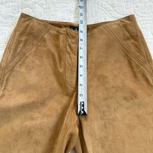 INC 100% Leather Suede Tan Flat Front Straight Leg Stitch Detail Pants WMs 2 EUC