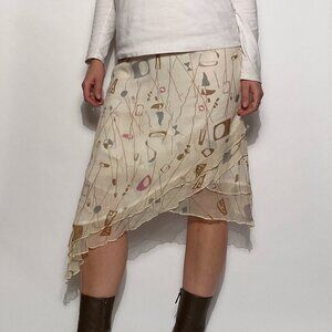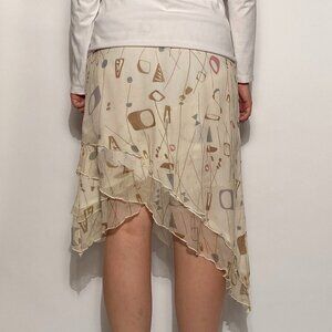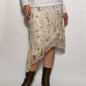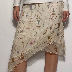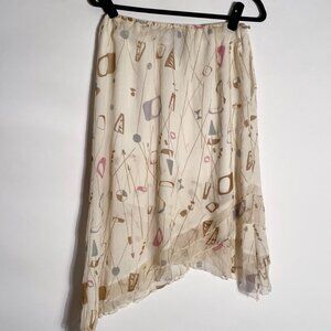 Vintage Y2K Real Silk ATOMIC Print Asymmetrical Skirt -- Small to Medium