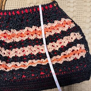 Black Crochet Top-Handle Bag with Pink tan and Orange Accents