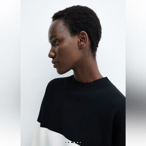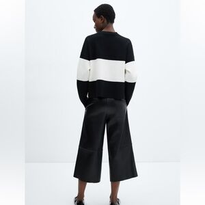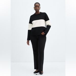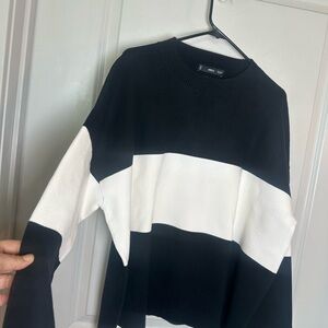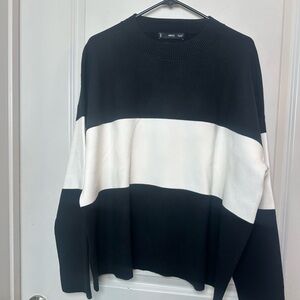 Mango Fine Knit Oversized Striped Black/White Sweater, Size 3XL