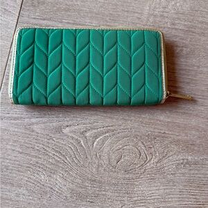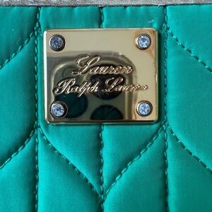Lauren Ralph Lauren Green Quilted Chevron Zip-Around Wallet Gold EUC old money