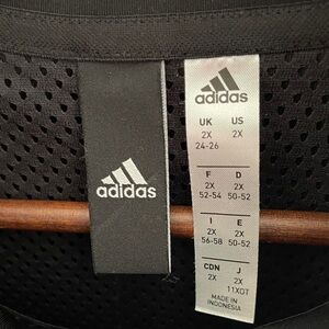 Gently worn...Sleek black adidas bomber jacket with subtle white piping. Full zip front and stand collar. Ribbed cuffs and hem for a neat fit. Signature adidas logo at the hem and tonal sleeve stripes. Sporty, minimalist design for everyday wear.