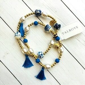 Elegant gold necklace by Talbots. Features a stylish square pendant and toggle clasp. Perfect for any occasion.
