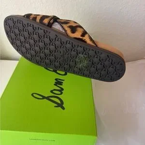 Step out in style with these Sam Edelman sandals featuring a chic tan leopard print. Perfect for adding a bold touch to any outfit.