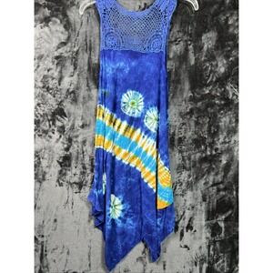 Indica Boutique Boho Tie Dye Dress Woman's Free Size Blue Festival