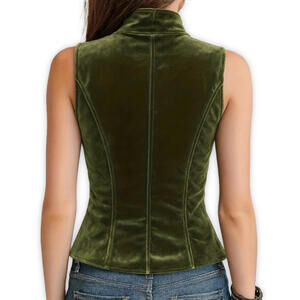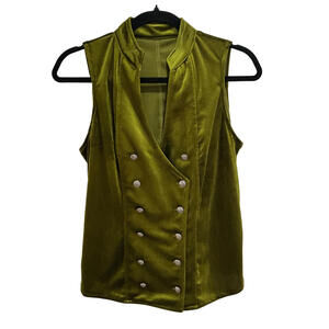 NEW Y2K Boho SZ S Velvet Green Military Double-Breast Button-Up Vintage Vest Top