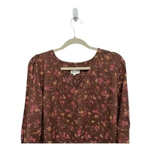 Candace Cameron Bure Long Sleeve V-Neck Brown Floral Fall Top XL Boho Cottage