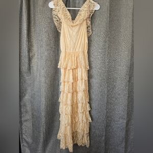 RAGA Anthropologie Woman's Peach Lace Tiered Maxi Dress Size M