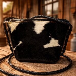 Keywords: Westerncore, Cowgirl, Animal Print, Calf Hair, Boho, Indie, Statement Bag, Minimalist, Y2K, Star Zipper, Braided Strap, Textured, Monochrome