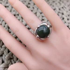 Vintage Heavy Sterling Silver Jade Ring