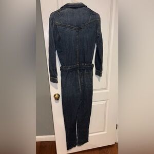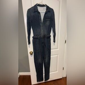 This jumpsuit is brand new without tags and in perfect condition in a size XS. This jumpsuit is marked a size XS and will fit comfortably and oversized ( as intended ) on a size XS. This can also fit a size small, it will just fit more true to size!