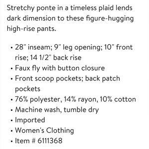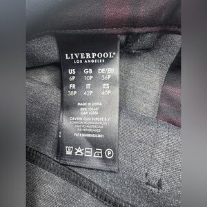 NWT Liverpool Jeans Stretch Plaid Ponte Pants Womens Size 6 Petite