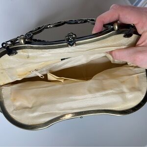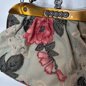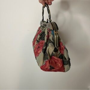 Vintage Floral Beaded Frame Purse Clutch Pink Green Brown