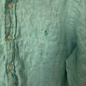 Ralph Lauren Cyan 100% Linen Long-sleeve Button-down Shirt Men's Size XL