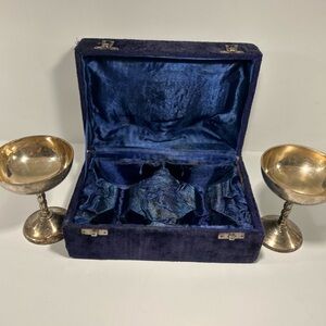 These small goblets are perfect for serving cordials, sherry, dessert wine, or liqueurs and come in their original blue velvet presentation box.