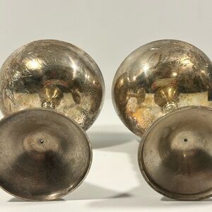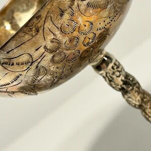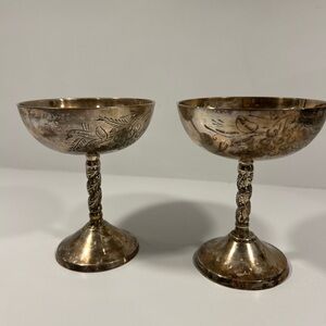 Beautiful pair of vintage silver-plated cordial / liqueur goblets featuring an elegant etched grape and leaf motif.
