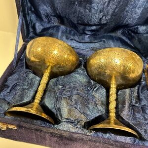 Vintage Silver Plated Cordial Goblets Pair Etched Grape Pattern w Velvet Box