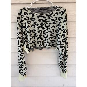 Maison Mascallier Leopard Print Cropped Sweater Size Large Black Cream Knit Top