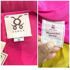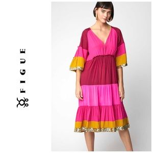 NWT Figue Silk Crepe Colorblock Gold Sequin Trim Midi Dress Bohemian Gypsy