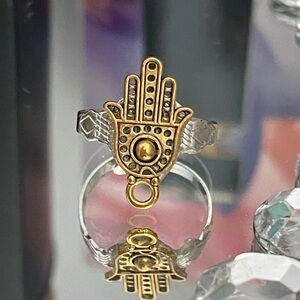 🎉🎉✨Goldtone and Silvertone Hamsa Adjustable Ring✨Fun Fashion Ring Preloved