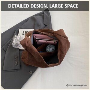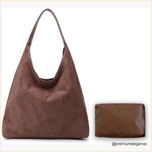 Faux Suede Hobo Tote Bag Large Capacity Everyday Purse
