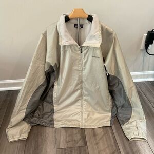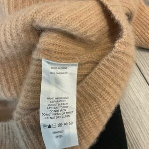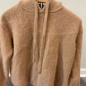 Lightweight ribbed knit hoodie. Drawstring hood and relaxed silhouette. Neutral beige tone for easy pairing. 100% cashmere. Slightly cropped. Wear as pictured.