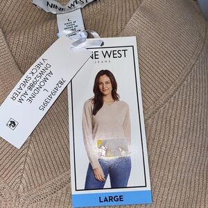 Nine West Women’s V-Neck Sweater Almondine Size Large