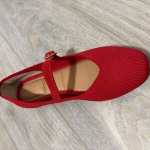 LIKE NEW - WORN TWICE - IN EXCELLENT, NEW CONDITION! Women's Elly & Katie, red, woven fabric, Mary Jane style flats.