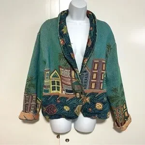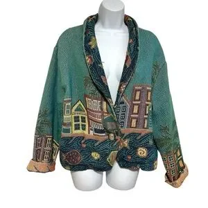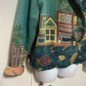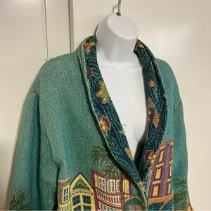 Vintage Sugar Street Weavers Tapestry Cardigan Cottage Water Size Large 100%