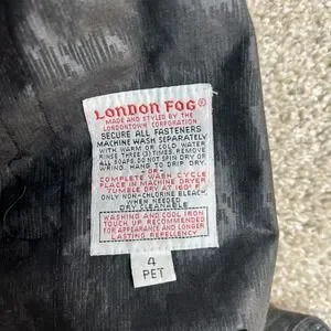 Graphics and logos: Exterior has a minimalist design without printed graphics; interior neck label displays the London Fog clock tower logo and "Made iKorea" wording.