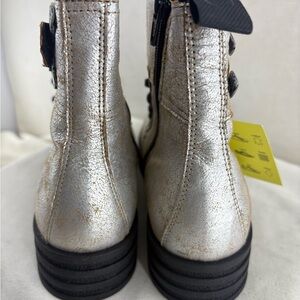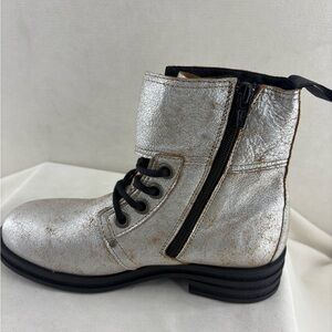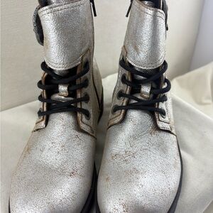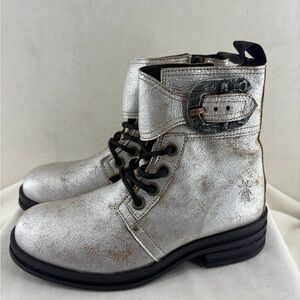 Fly London Kara Silver Metallic Lace-Up Buckle Boot size 38 NIB