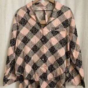 Victoria’s Secret Flannel Pink and Leopard Animal Cheetah Pajama Set NEW Medium