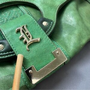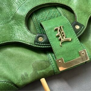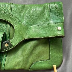 LAMB Gwen Stefani Foldable Clutch Purse Y2K Bag Green Distressed Leather READ Description