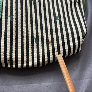 Ink stain, wear on brass hardware and scratches front and back of bag shown in photos