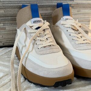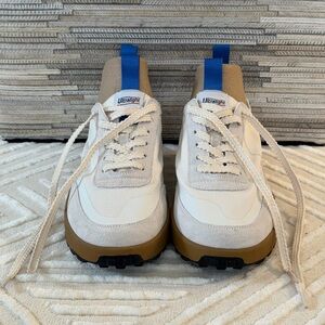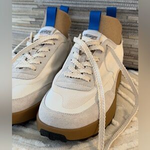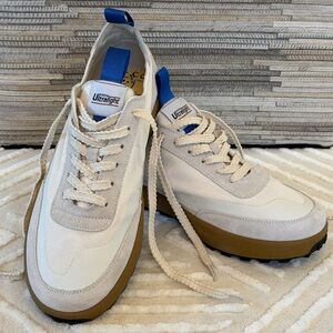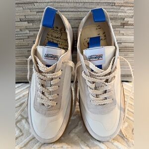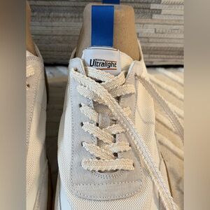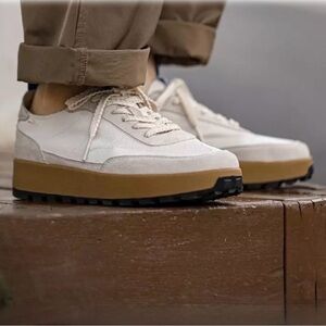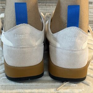 Style: retro running sneaker aesthetic with contrasting blue heel pull tab suitable for casual outfits.