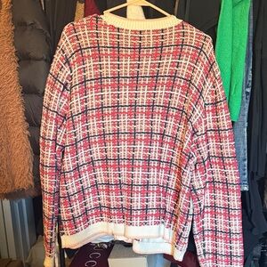 Anne Taylor Tweed Button-Up Cardigan Jacket in Pink, Navy & Cream