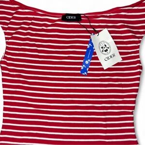 Brand new with tags CIDER ribbed knit top in red and white stripes. Features a flattering fitted silhouette, cap sleeves, and stretchy cotton blend fabric. Perfect Y2K, coastal, or Parisian-inspired staple.
