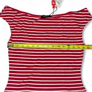 CIDER Red & White Striped Ribbed Cap Sleeve Top NWT