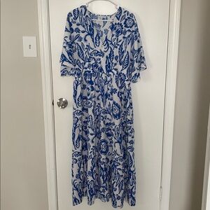 Floral Blue and White Maxi Dress