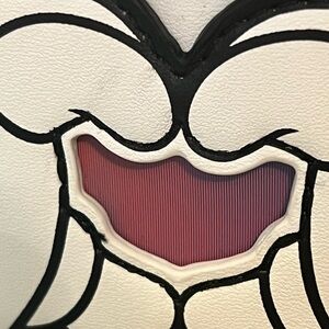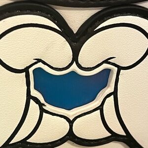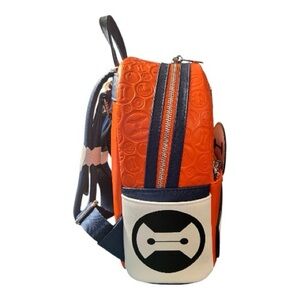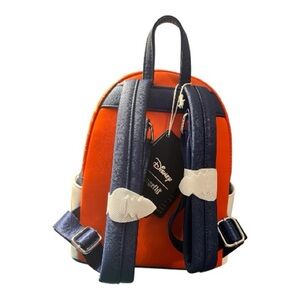 Bold orange bag with embossed design. Features a blue Disney Loungefly plaque.