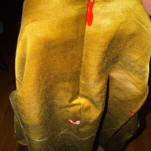 Mauve Olive Green Embroidered A-Line Midi Skirt with Red Trim