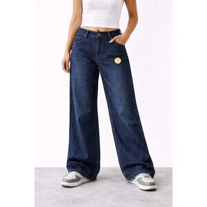 Y2K Wide Leg Dark Wash Skater Jeans Stretch Baggy Womens 12 Faded Glory