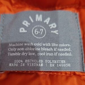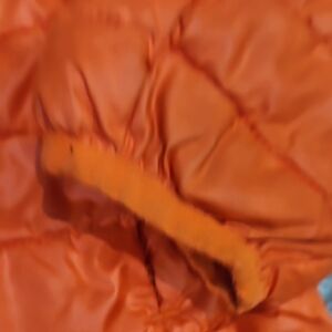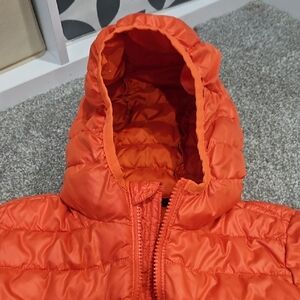Vibrant orange puffer for kids. Cozy and warm. Ideal for cold weather.