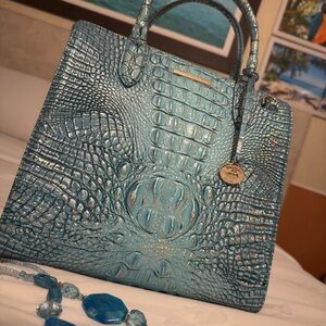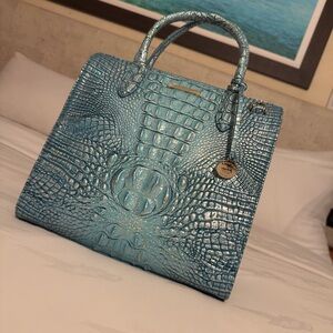Brahmin Turquoise Embossed Satchel