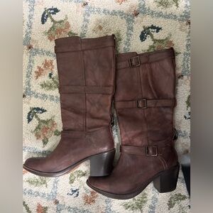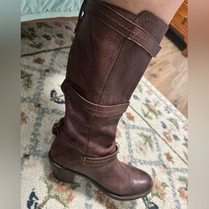 Frye Brown Leather Knee-High Boots Buckle Strap Women’s Size 8B