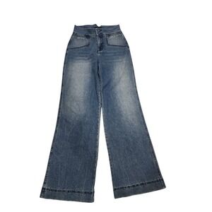 House of Harlow 1960 Women 26 Blue Wide Leg High Rise Denim Jeans Hippie Retro