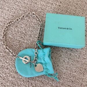 Authentic Tiffany & Co. sterling silver heart tag toggle necklace featuring the iconic chunky chain and toggle clasp design with the classic Tiffany heart charm.