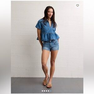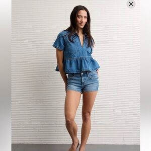 NWT American Eagle Denim Popover Denim Peplum Short-Sleeve Top